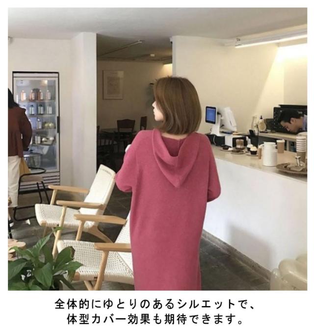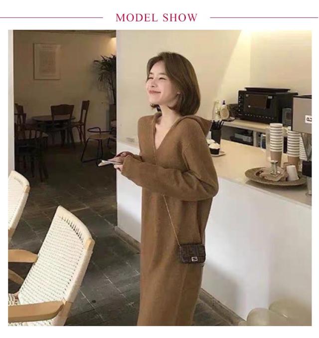 送料無料 ワンピース 長袖 フード付きニットワンピース スリットワンピース ニットワンピ Iライン ミモレ丈ワンピース 深めVネック 秋冬 レディース 洗える マキシワンピース ロング 大きいサイズ ドレス シンプル ゆったり