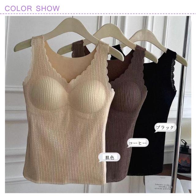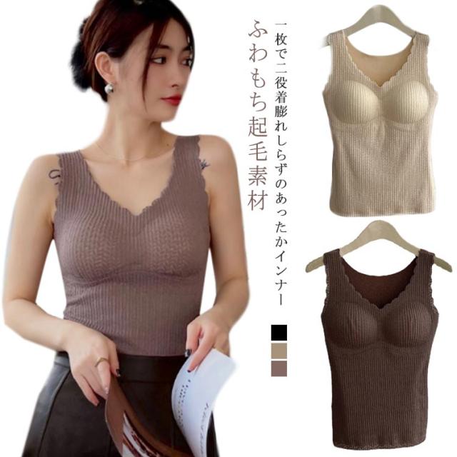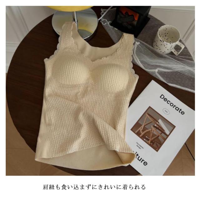 カップ付き レディース あったかい 裏起毛 ヒートインナー ブラトップ 切り替えレース タンクトップ 取り外し可 カップ付きタンクトップ あったかインナー 防寒 冷え対策 あったかインナー ぽかぽか