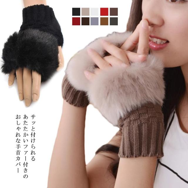 ハンドカバー ウォーマー レディース スマホ手袋 指なし ショート ニット アームウォーマー 手首ウォーマー アームカバー リストウォーマー グローブ ファー 選べる10色!ハンド