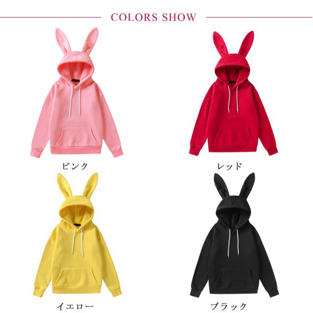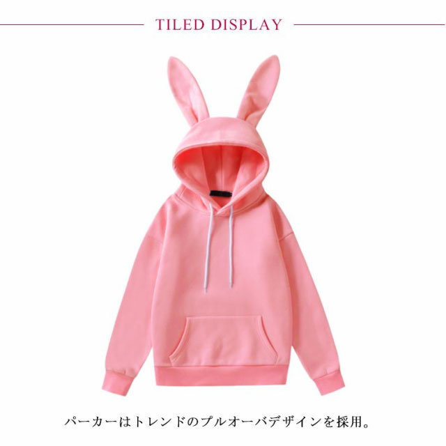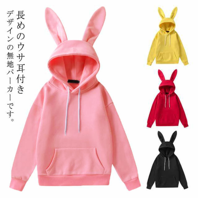 | 長めのウサ耳付きデザインの無地パーカーです。 パーカーはトレンドのプルオーバデザインを採用。 優れた伸縮性、滑らかな肌触りでストレスなく1日中快適に過ごせる柔らかい生地を採用。 薄手も裏起毛生地でちょっと寒い季節も一枚でもOK。 スタイリッシュな見栄えに仕立ててくれ、休日でもカッコ良くスタイリング。 デニムやチノ、スカートスタイルなど様々な着こなしができるおススメ品です。 スポーツやちょっとしたお出掛け、ルームウエアとしてお勧めのアイテムです。 | |