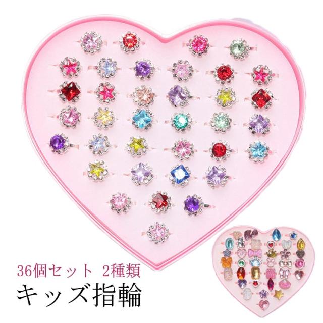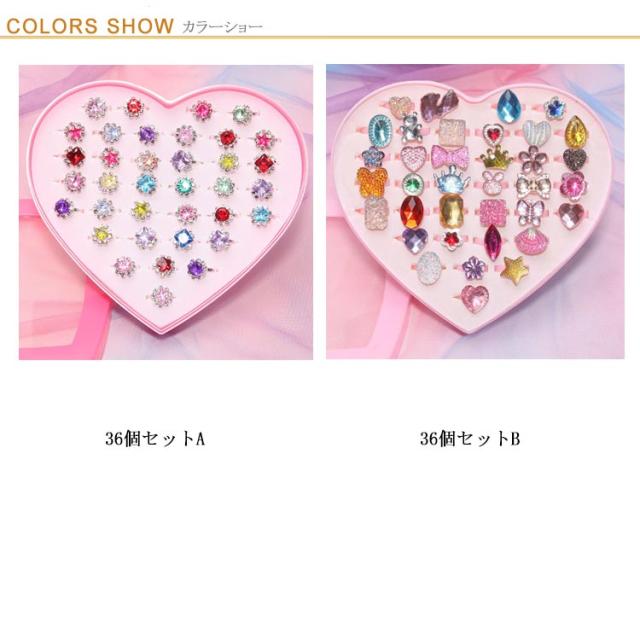 指輪 送料無料 宝石 おもちゃ ジュエリー 36個セット 女の子 子供用 縁日 リング かわいい クリスマス プレゼント リングセット 幼稚園 お祭り