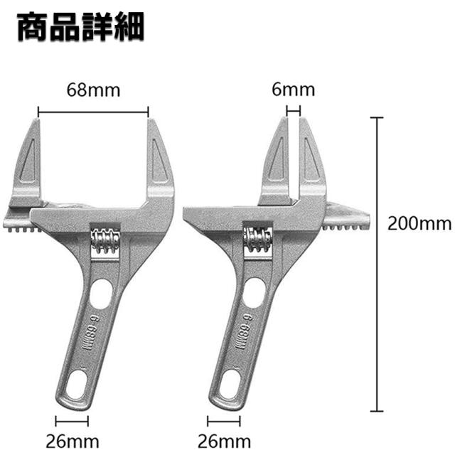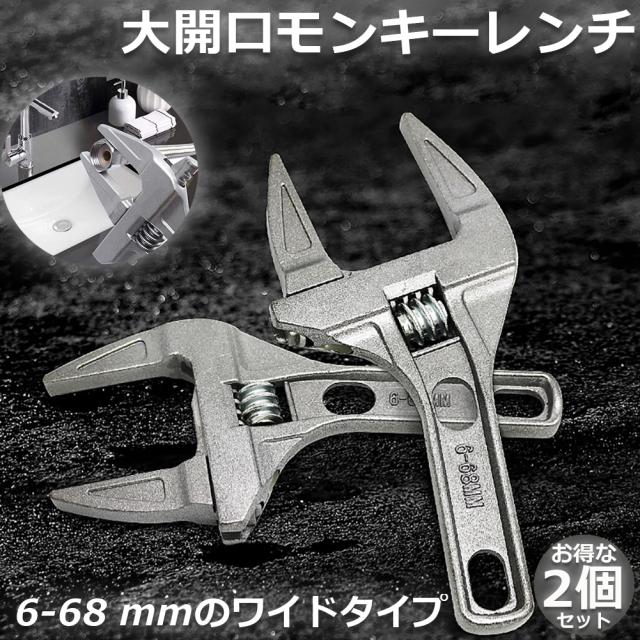 モンキーレンチ たて型 2個セット トップワイド 大の調整範囲 6-68mm 高品質 アルミニウム合金 薄型 ハンドル大開口 DIY 工具 送料無料