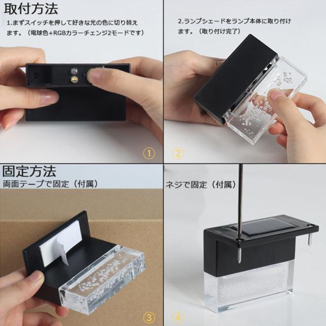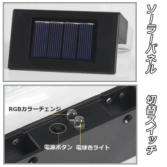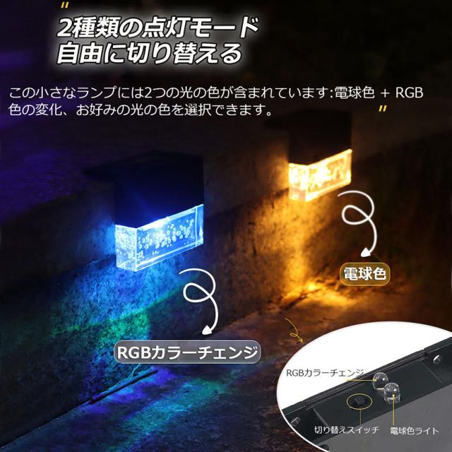 【2つの点灯モード】: 1. 電球色。 2. 色 (RGB) を変更します。 ライトは夜間に自動的に点灯し、一晩中点灯します。