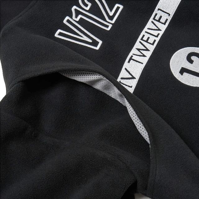バックに施された様々なV12のデザイン刺繍が特徴的なフリースジャケット