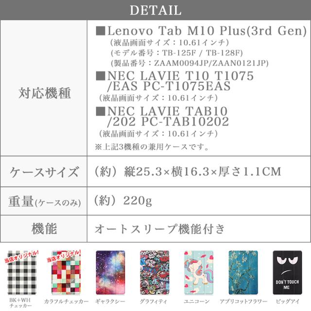 タッチペン・専用フィルム2枚付 Lenovo Tab M10 Plus ( 3rd Gen ) ケース TB-125F / TB-128F /TB-128FU / NEC LAVIE Tab T1075EAS / TAB10202 3つ折り レノボ タブM10 プラス 第3世代 PUレザー タブレットカバー オートスリープ機能 蓋マグネット内蔵 かわいい 柄 おしゃれ