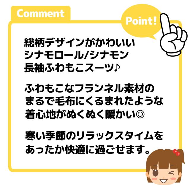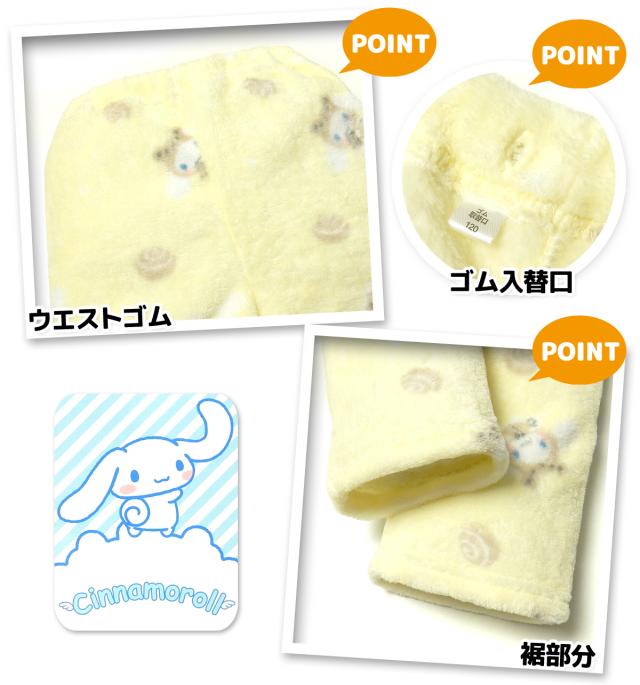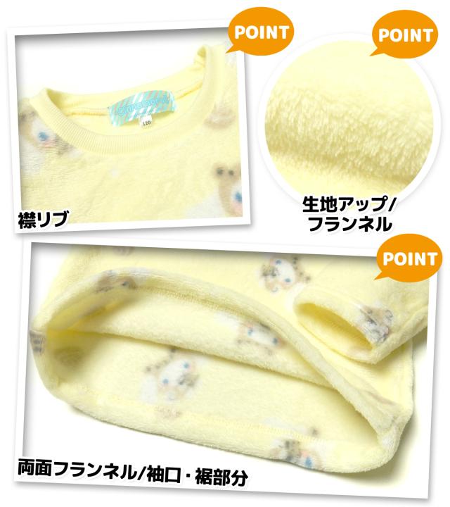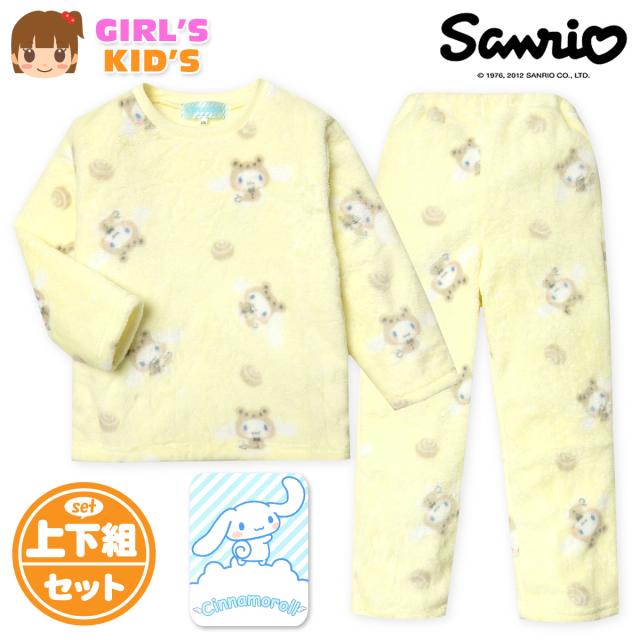 【送料無料】女児 キッズ フランネル素材 長袖 パジャマ Sanrio サンリオ シナモロール シナモン 上下組 ふわふわ もこもこ あったか素材 保温性 総柄 子供服 女の子 110cm 120cm 130cm yg-1740a-ye【メール便対応】