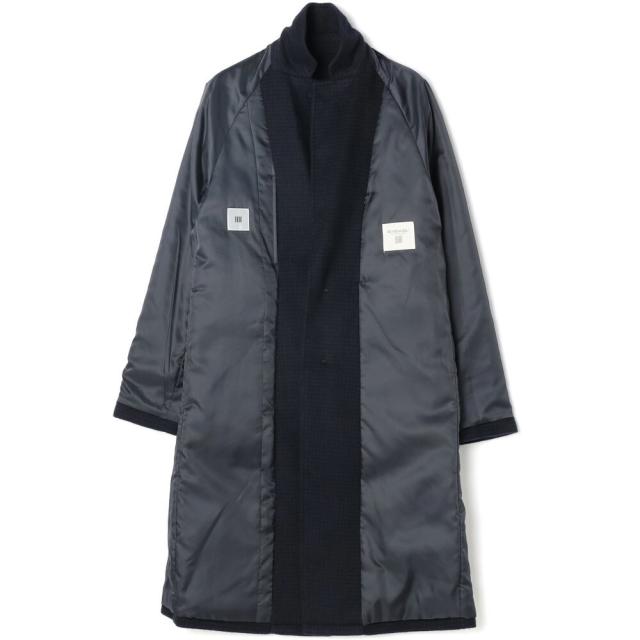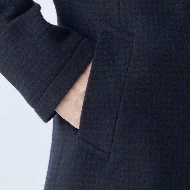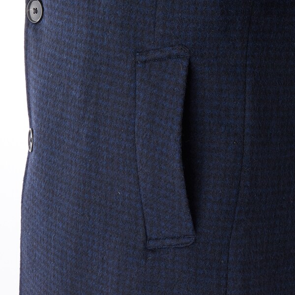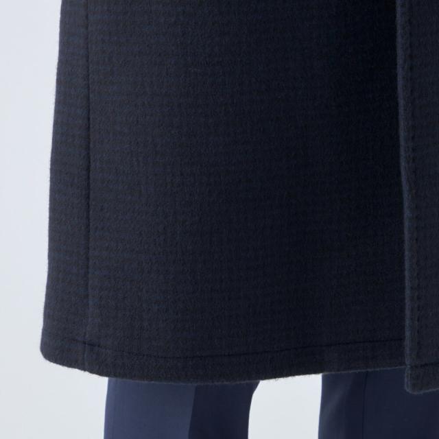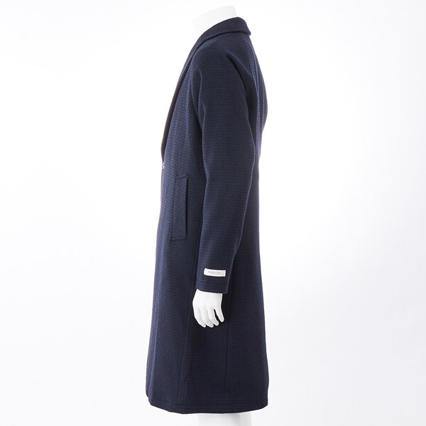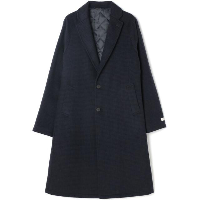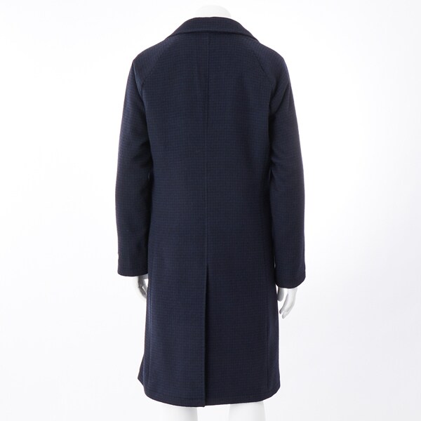 【SL】ウールブレンド ラグランチェスターコート/ネイビー×チェック/RE:NEWOOL