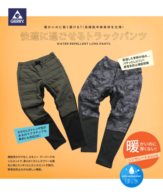gerry トラックパンツ スキニーパンツ メンズ ストレッチ インサレーションパンツ 撥水 保温 暖か あったか 軽量 冬 ボトムス キャンプパンツ テーパードパンツ ジョガーパンツ 大きいサイズ 黒 ブラック グレー カーキ ネイビー ベージュ 軽い ジェリー 076460 078910