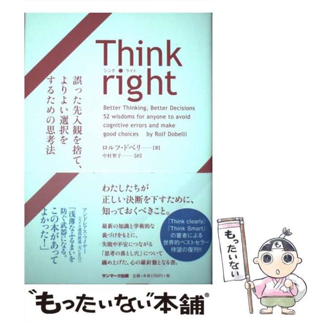 【中古】 Think right 誤った先入観を捨て、よりよい選択をするための思考法 / ロルフ・ドベリ、中村智子 / サンマーク出版 [単行本(ソフトカバー)]【メール便送料無料】