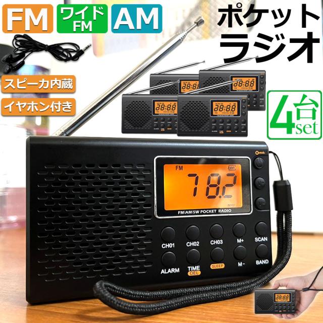 ポケット ラジオ 4台セット 防災 小型 おしゃれ ポータブルラジオ ポケットラジオ AM/FM ワイドFM 携帯ラジオ ミニーラジオ 防災ラジオ 高感度 小型 おすすめ DSP FM ラジオ AM ラジオ 時計 アラーム スリープ 大画面
