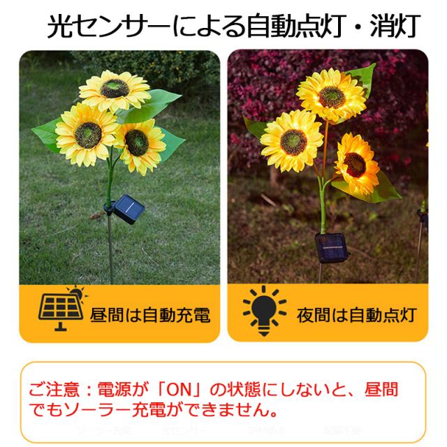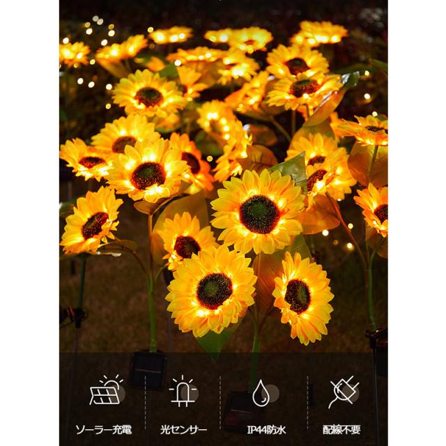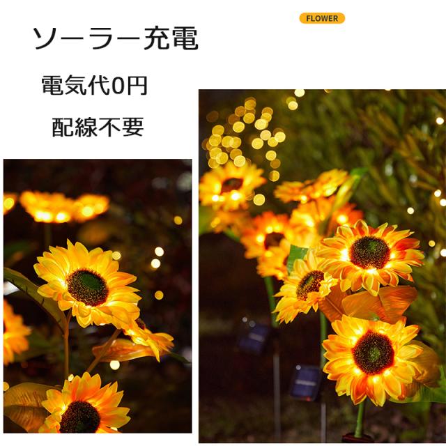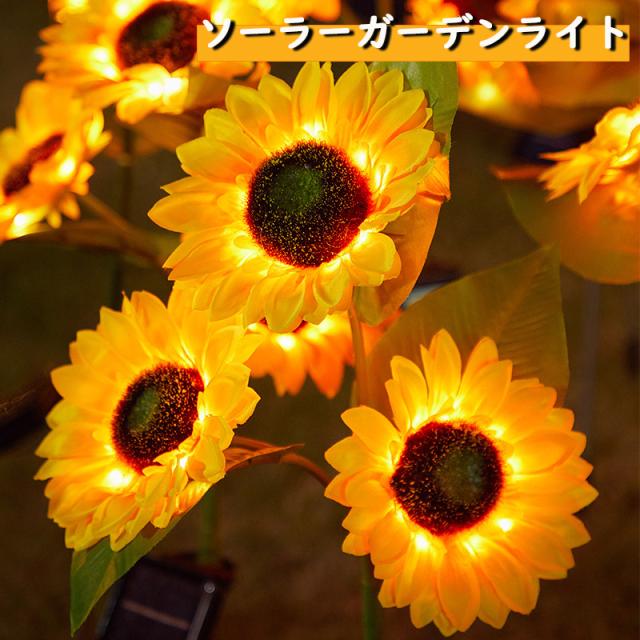 ガーデンライト ソーラー ライト おしゃれ 屋外 明るい LED ひまわり スパイク型 ガーデン 庭 防水 1本 ソーラーガーデンライト 自動点灯・消灯 埋め込み式 防災