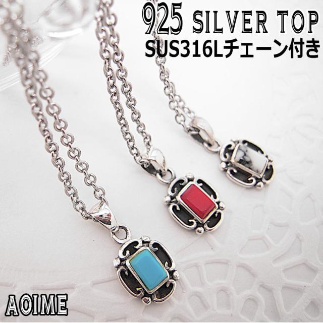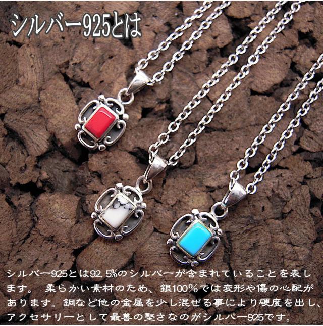 銀製品 シルバー ペンダントトップ と ステンレスチェーン ターコイズ 珊瑚 ホワイトハウライト ネックレス t016-ch1
