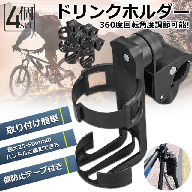 ドリンクホルダー 自転車カップホルダー カップホルダー 4個セット バイク 車椅子 ベビーカー ママチャリ 哺乳瓶 保温瓶 ロック機能付 傷防止テープ付き 360度回転 簡単角度調整 簡単 取り付け