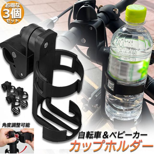 ドリンクホルダー 自転車カップホルダー カップホルダー 3個セット バイク 車椅子 ベビーカー ママチャリ 哺乳瓶 保温瓶 ロック機能付 傷防止テープ付き 360度回転 簡単角度調整 簡単 取り付け
