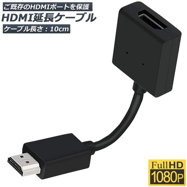 HDMI 延長 ケーブル TV Stick HDTV PC 延長 HDMI オス メス 変換 HDMI延長コネクター 1080P 10cm 短い スリム