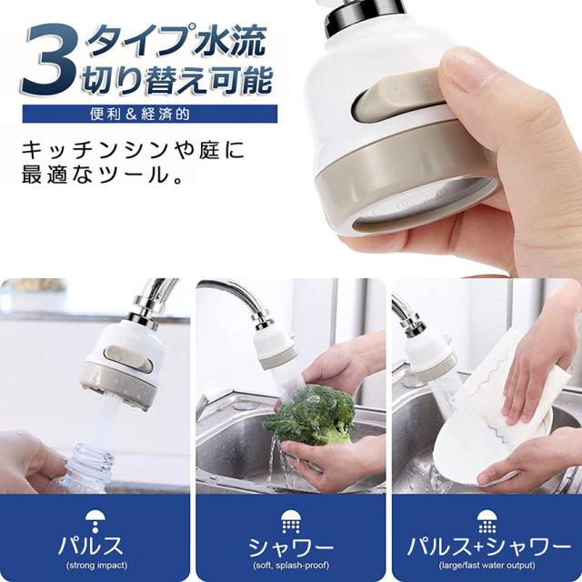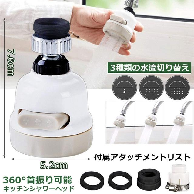 蛇口シャワー キッチン蛇口 キッチンシャワーヘッド 蛇口に取り付けるだけ 節水 ノズル 首振り 3つモード 台所 360度回転 切り替え 流し 水道 水栓 360° 冷温 ABS樹脂 ペットシャンプー キッチンシャワー 取付簡単