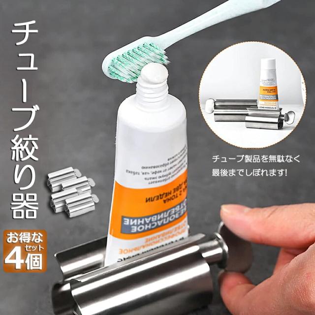 チューブ絞り器 チューブ 絞り器 4個セット ステンレス製 押し出し ローラー ステンレス製 歯磨き粉 日用品雑貨 歯磨き粉 絵の具 ハンドクリーム 白髪染め 接着剤 軟膏 しぼり器