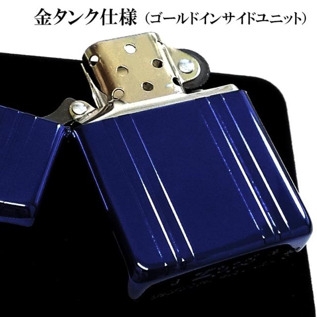 ZIPPO 限定 ジッポ ライター アーマー ダブルストライプ イオンブルー 青金 ゴールドタンク 金差し サイドロゴ シリアルナンバー入り