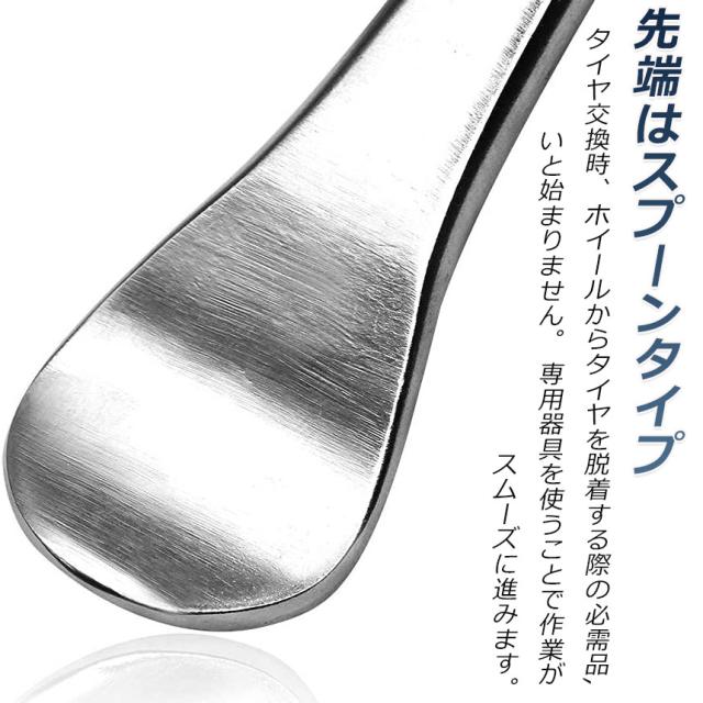 「人間化なスプーンデザイン」:タイヤレバーの先端はスプーンタイプになっていて、タイヤとリムの狭い隙間にも簡単に入り込むことが可能、そして手にやさしいグリップデザインで滑り止めで握りやすいです。