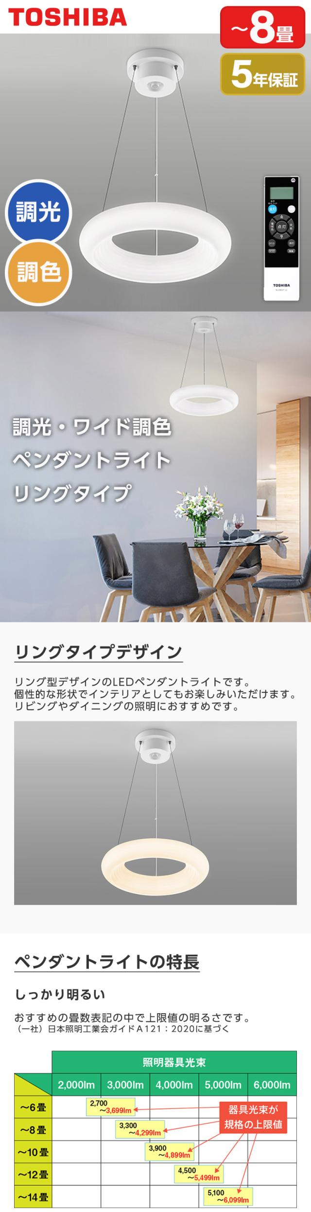 東芝 NLEP08000A-LC [LEDペンダントライト (〜8畳/調色・調光) リモコン付き]