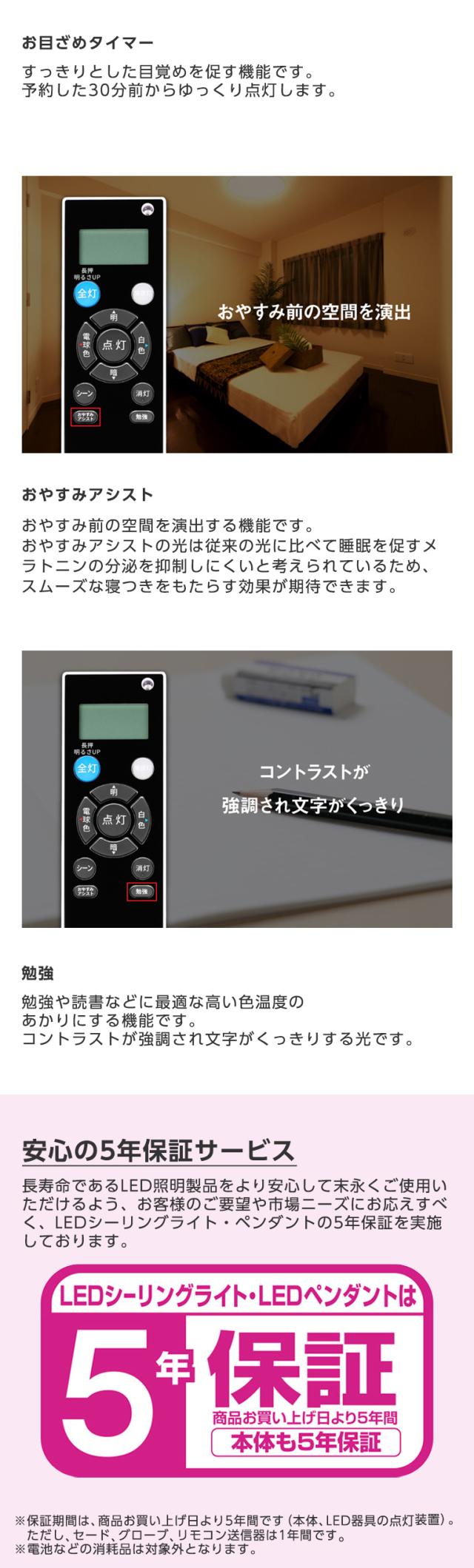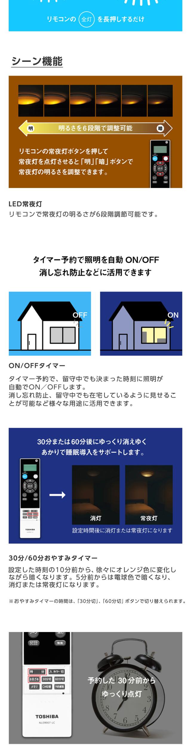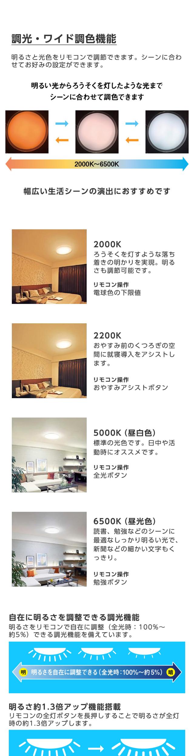* 調光/調色:連続調光(約5%〜100%)LED常夜灯6段階調光 色温度 6500〜2000K