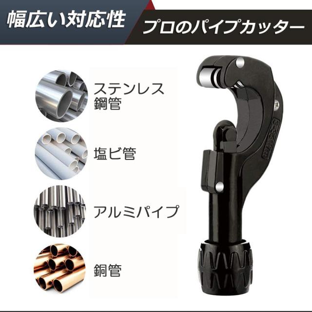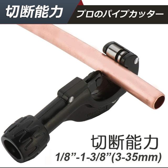 切断能力:切断可能な直径:3〜35mm。切断可能な厚さ:3mmまで。切断可能な素材:銅管、アルミ管、ステンレス管、塩ビ管などです。