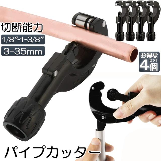 パイプカッター 4個セット 塩ビ ステンレス 物干し竿 切断可能な直径3〜35mm 厚さ3mmまで 切れ味抜群 ミニパイプカッター 銅管 アルミ管 ステンレス管 塩ビ管 切断可能 携帯型パイプカッター バリ取りカッター付
