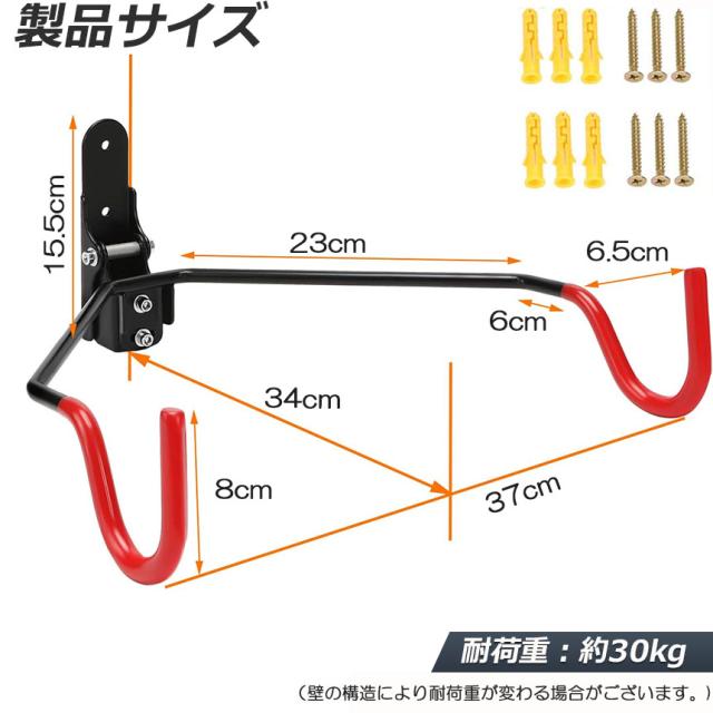 【高品質の素材】頑丈なスティール製で約30kgまでの自転車を支えることが 出来ますので、ショップでも自宅でも大活躍します。また、フックには保護用ラバーが装着され、自転車フレームへの傷つき防止できます。