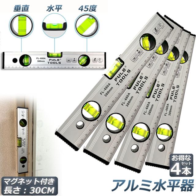 水平器 マグネット 水準器 レベル 4本セット アルミ合金 レベル磁気 測定工具 角度定規 30cm 測定器 日曜大工 大工道具 建築現場 土木 配管 DIY