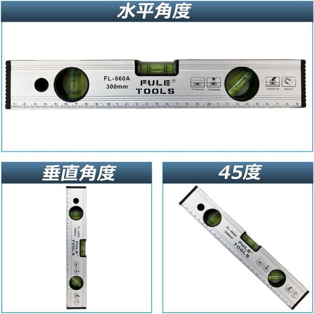 【 商品仕様 】 ●「商品サイズ」30x5.3x2cm ●「機能」水平・垂直・斜め45度の3方向を測れる仕様 ●「精度」0.1mm ●「材質」軽量アルミ
