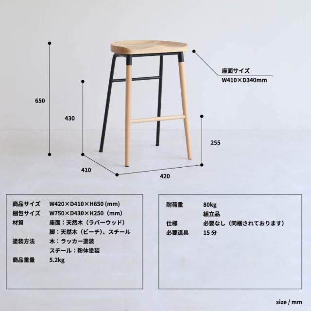 スツール 高め 木 ウッド 業務用 スリム コンパクト ハイタイプ ダイニング カウンター スチール 軽量 リビング 高い椅子 丈夫