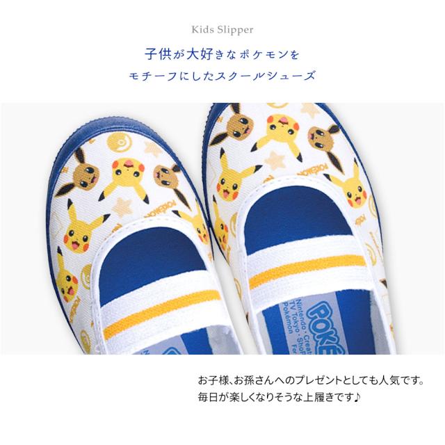 上履き キッズ 子供靴 上履き 子供 上靴 保育園 幼稚園 かわいい 男の子 女の子 スクールシューズ 室内履き ポケットモンスター キャラクター ポケモン ピカチュウ イーブイ イエロー 黄色 ネイビー S05