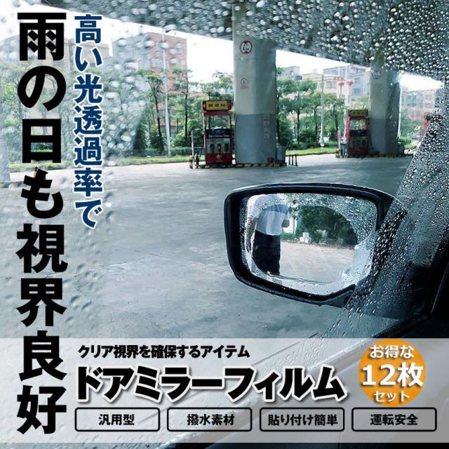 車のバックミラーフィルム カーバックミラー 車用防水フィルム 防水フィルム 12枚入り 車用ドアミラー サイドミラー 光学ナノコーティング 汎用型 撥水 曇り止め 雨除け 防雨 防水 防曇 視界確保 安全運転
