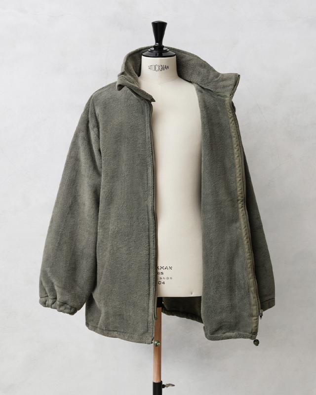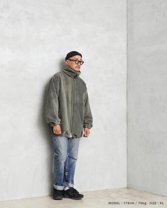 厚手のフリース素材が使用された寒冷地仕様のフリースジャケットで、首元まで覆うスタンドカラーデザインが寒さの厳しい環境では風の侵入を防いで高い保温性をキープします。ゆったりとしたサイズなのでアウターとして単体で着用することはもちろん、本来はアウターのライナーとして使用されているために真冬の防寒ライナーとしても使用できる機能性に優れたアイテムです。