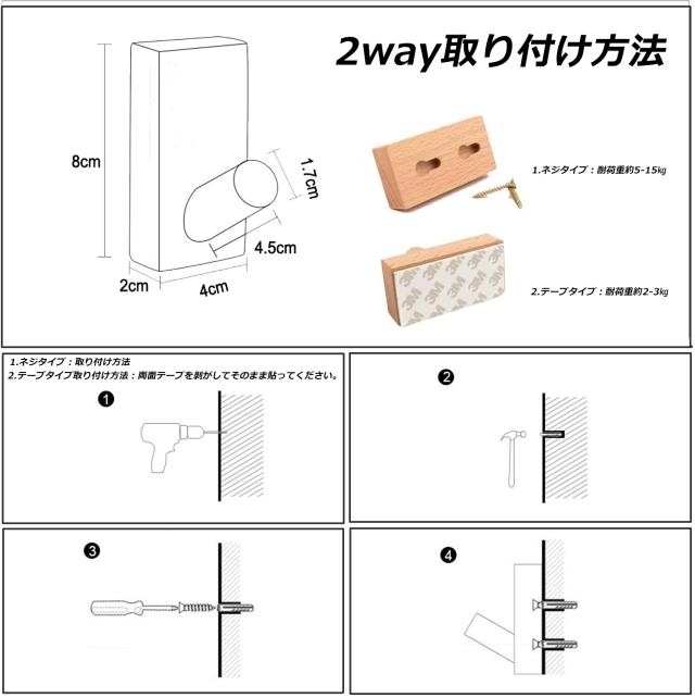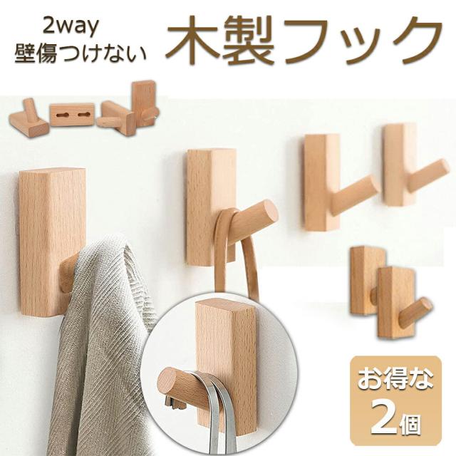 木製フック 壁フック ウォールフック 2個セット おしゃれフック 壁掛けフック ウォールハンガー 洋服掛け 帽子掛け 帽子フック 装飾壁掛けフック タオルハンガー 壁傷つけない 長方形ブナ 送料無料