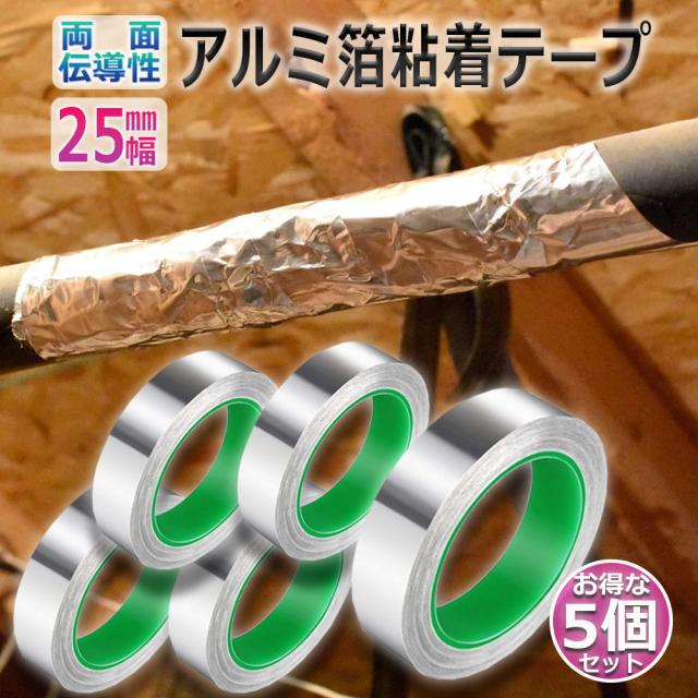 導電性アルミテープ 5個セット 幅25mm×長さ20m×厚さ0.1mm アルミ箔粘着テープ 導電 アルミテープ 静電気除去 アルミテープチューン 耐熱 強粘着 厚手 両面導電性 両面伝導性 送料無料