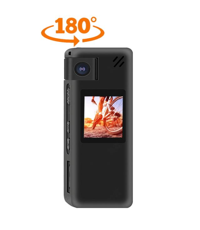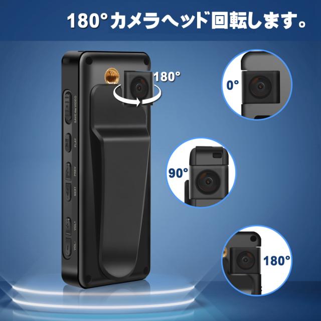 【回転ヘッド】カメラヘッド部分が180°回転します。180°以内であれば正面、横、裏どの角度でも録画可能。