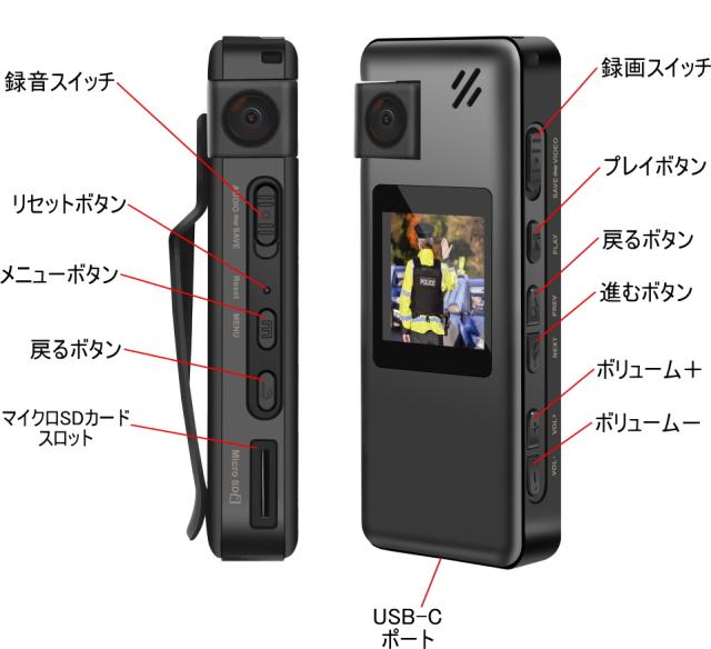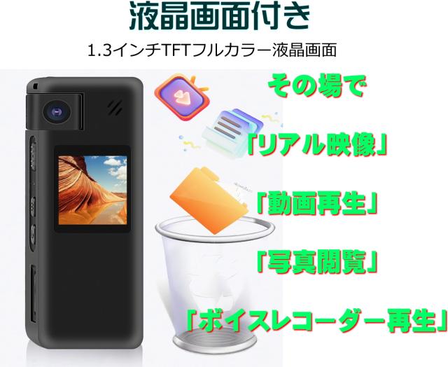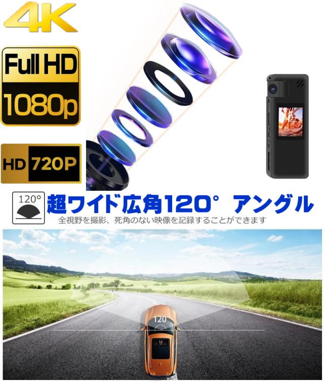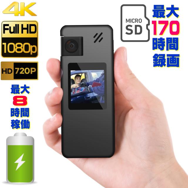 高画質4K,1080P FHD,720P録画!最大8時間バッテリー稼働!マイクロSDカード最大170時間連続録画!1.3インチTFTカラーLCD液晶画面内蔵。