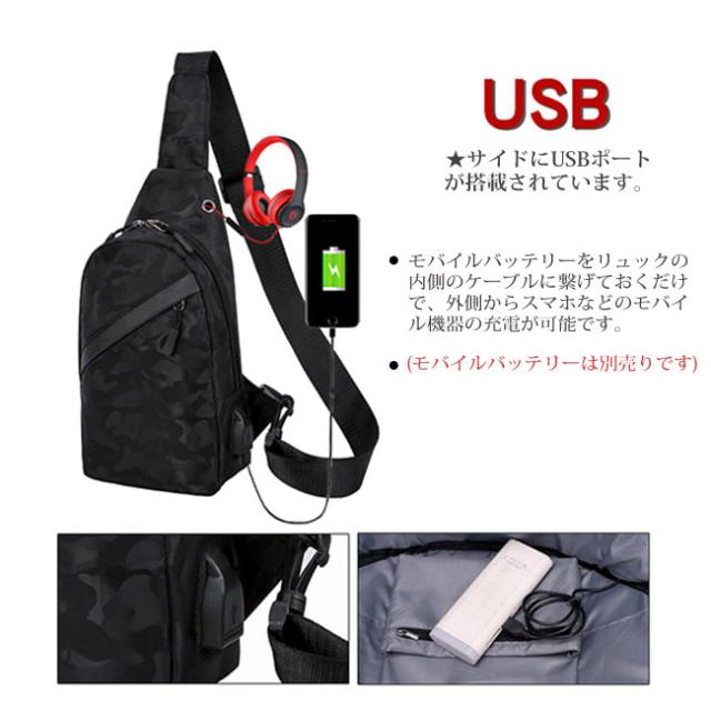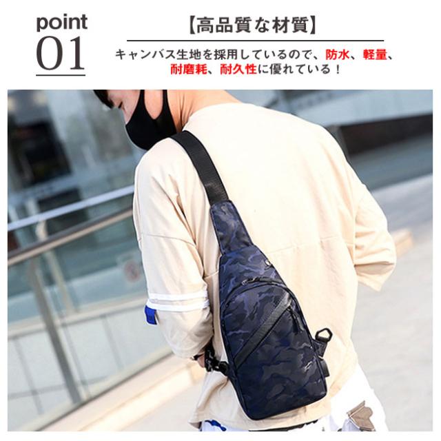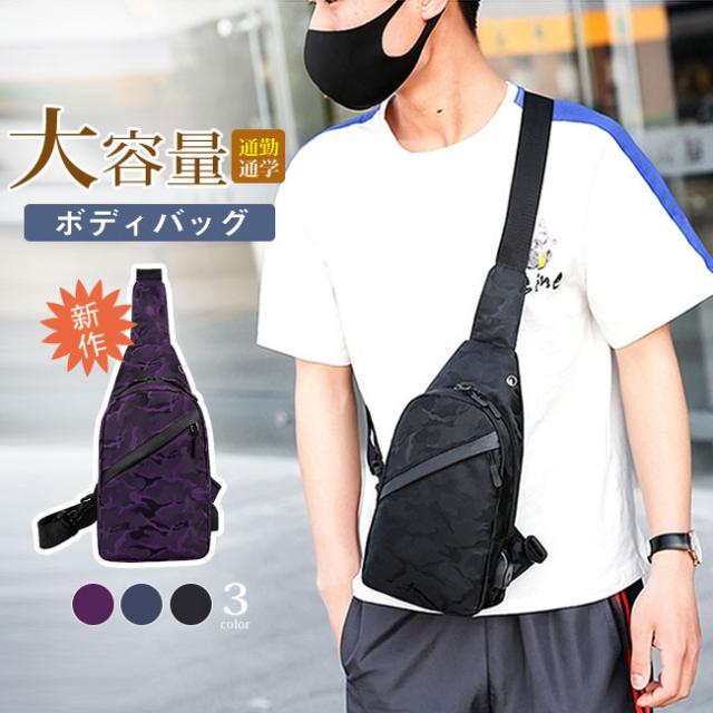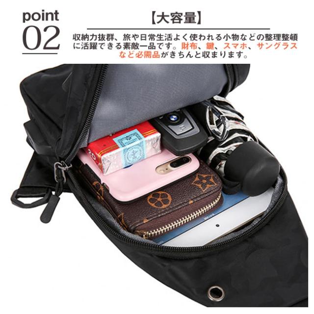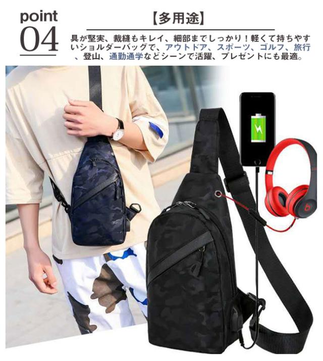 2026新作 ボディバッグ メンズ ショルダーバッグ 迷彩 大容量 斜めがけ アウトドア 通勤 通学 イヤホン穴付き usbポート付き