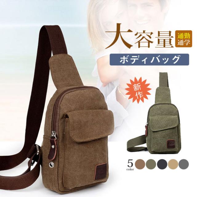 2026新作 ボディバッグ メンズ ショルダーバッグ 大容量 キャンバス 斜めがけ アウトドア 通勤 通学 イヤホン穴付き