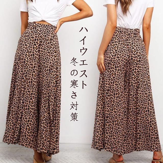 秋冬新作 送料無料 赤字覚悟 ワイドパンツ ガウチョパンツ レディース ヒョウ柄 通勤 女性 大人 上品 トレンド 20代 30代