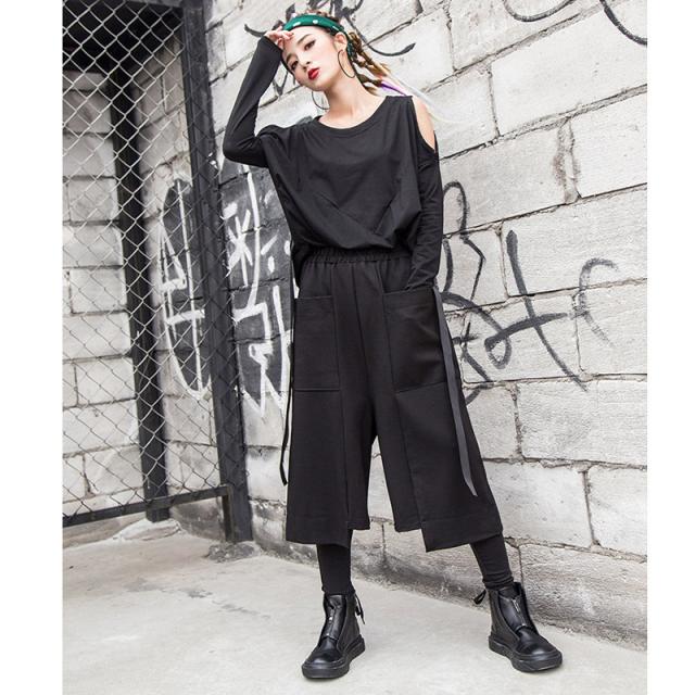 秋冬新作 送料無料 赤字覚悟 パンツ ガウチョパンツ ボトムス 七分丈 レディース ズボン 黒 大人 女子 無地 旅行 個性的 新