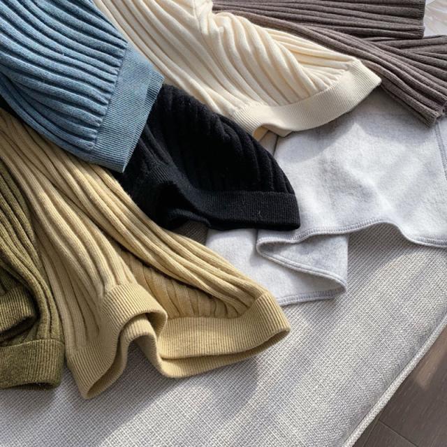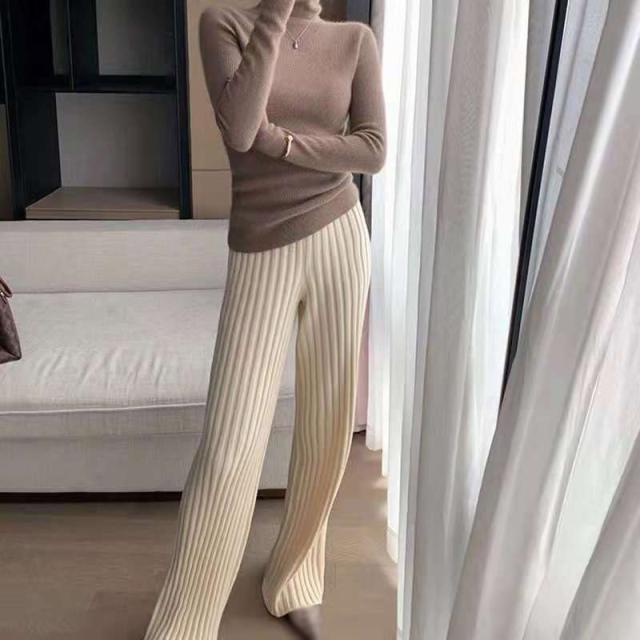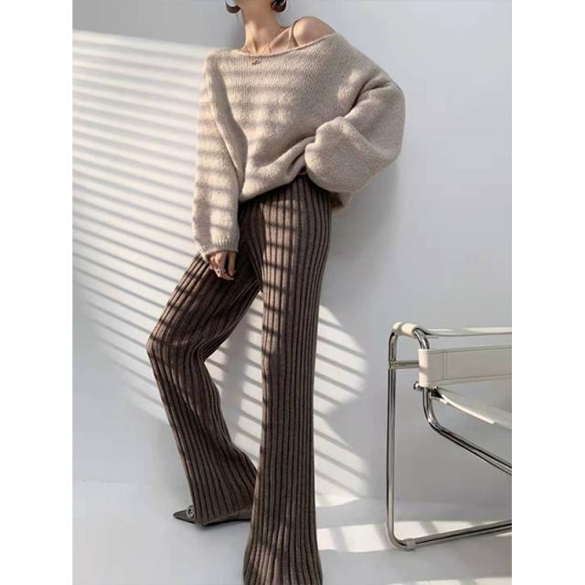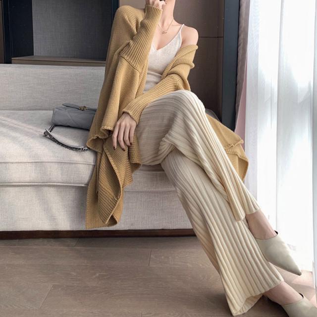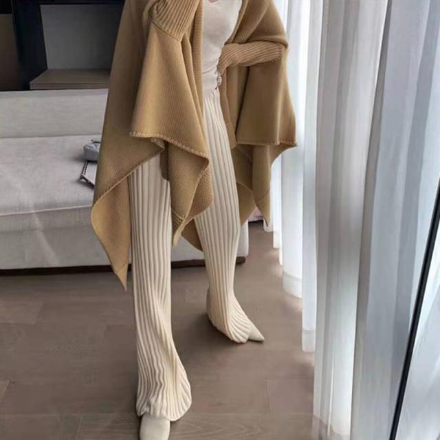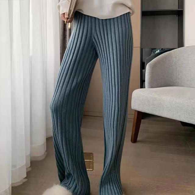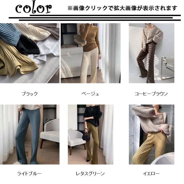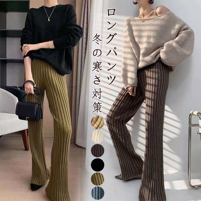 秋冬新作 送料無料 赤字覚悟 ワイドパンツ レディース ニットパンツ ロングパンツ 無地 リブ ボトムス 大人 ガウチョパンツ 4