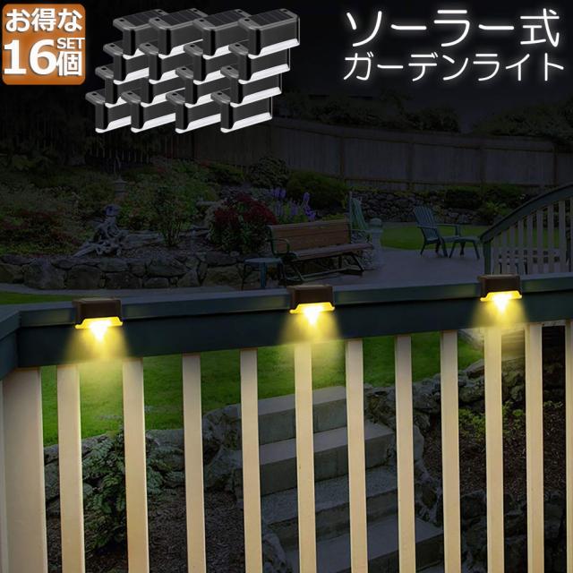 ソーラーライト 屋外 防水 おしゃれ 16個セット ガーデンライト LED 階段 門灯 デッキ ベランダ 自動点灯消灯 ガーデン LEDライト 芝生 歩道 庭 送料無料