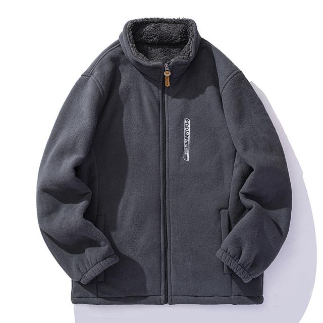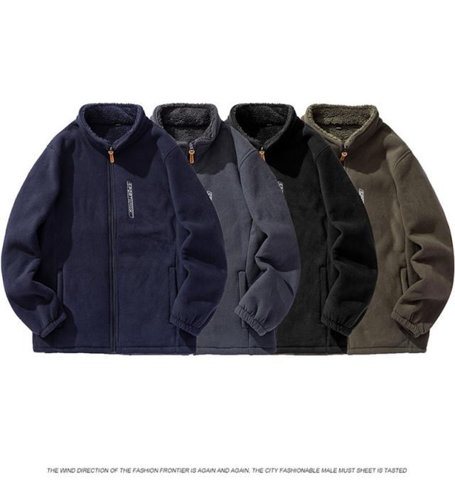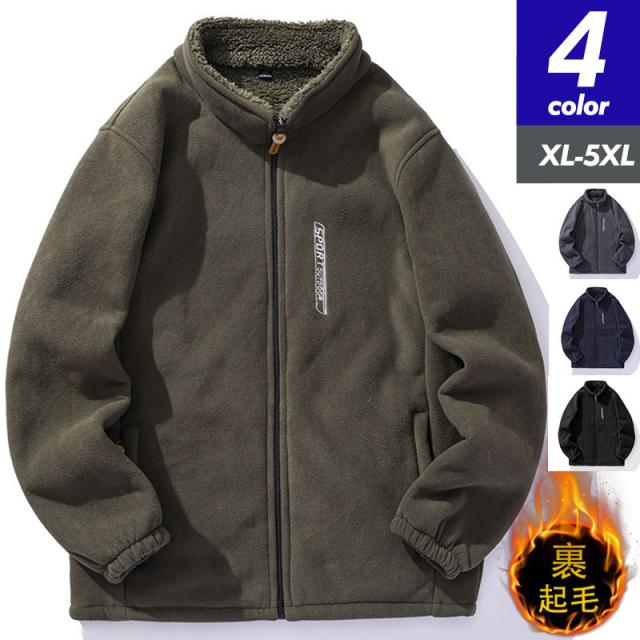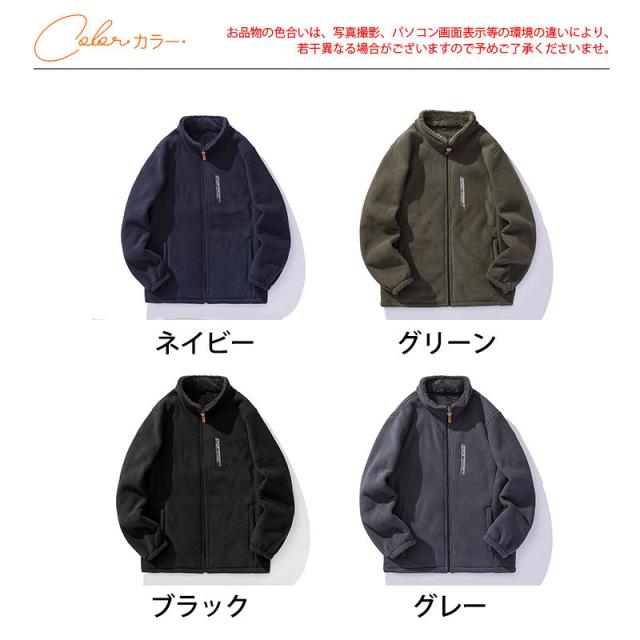 ボアジャケット メンズ フリースジャケット 裏ボア ブルゾン アウター 立ち襟 もこもこ ゆったり 大きいサイズ 無地 暖か 防寒