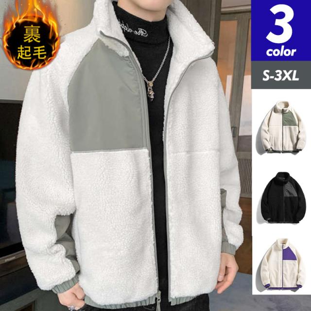 ボアジャケット メンズ フリースジャケット ブルゾン アウター 立ち襟 バイカラー もこもこ ゆったり 厚手 暖か 防寒 冬 おし
