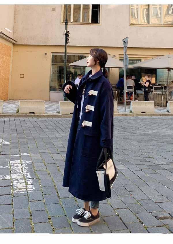 ダッフルコート ロングコート コート ステンカラーコート ドロップショルダー フードなし 暖かい おしゃれ 体型カバー 中綿コート 韓国 暖かい おしゃれ 体型カバー かわいい エレガント dv084zezec6
