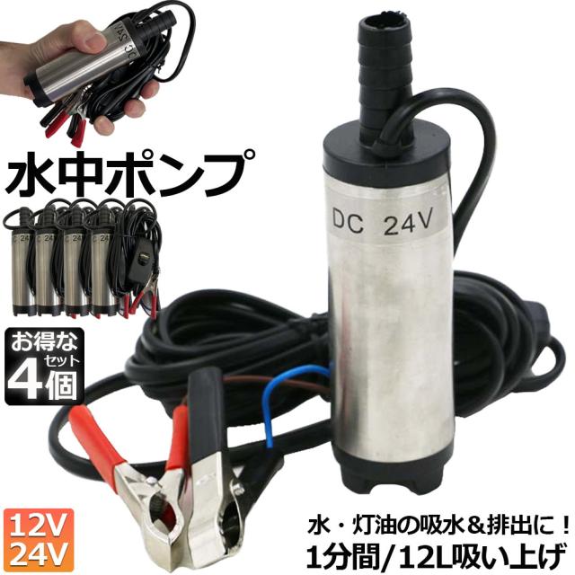 水中ポンプ 12V 24V 4個セット 小型 ウォーターポンプ 12L/min バッテリークランプ 電動 ポンプ ケーブル 3m スイッチ式 強力 給油 給水 排油 排水 灯油 海水 船舶 風呂 水槽 汚水バッテリー クランプ 給排水