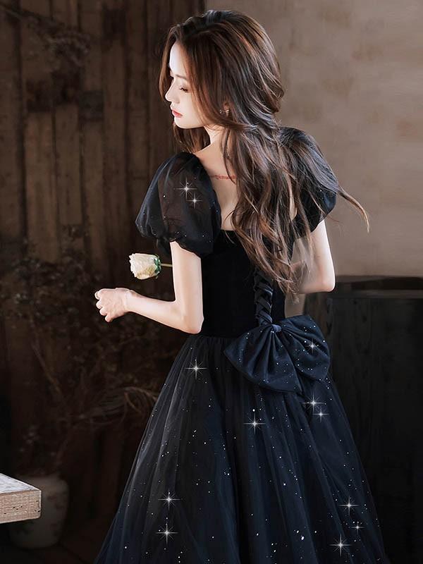 【送料無料】ドレス 大人 ピアノ 発表会 ロングドレス 演奏会 結婚式 母親 ドレス ピアノ発表会 黒 袖付き ワンピース 半袖 演奏会ドレス 演奏会用ドレス