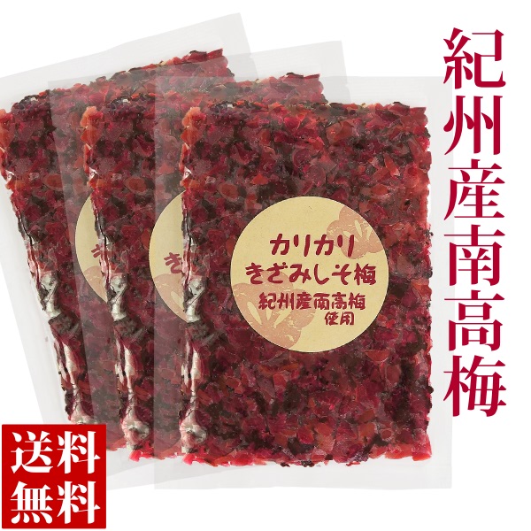 紀州産の刻み梅を、3袋セットにして送料無料のメール便でお届けいたします。その南高梅に香り豊かな紫蘇を合わせて刻みました。
